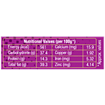 Ingredient:Cashew Nut, Iodised Salt, Maltodextrin, Spices & Condiments (chilli, Coriander, Cumin, Turmeric, Fenugreek, Pepper), Acidity Regulators (ins 330 & Ins 296), Anticaking Agent (ins 551), Corn Starch, Mango Powder, Onion, Sugar, Garlic, Tomato Powder, Flavour Enhancers(ins 627 & Ins 631). Nutritional Value:Energy( kcal)561,Carbohydrate (g) 37.4,Protein (g)14.3,Total fat (g)39.3,Calcium (mg)15.9,Copper (g)1.92,Iron (mg)5.32,Zinc (mg)4.14.