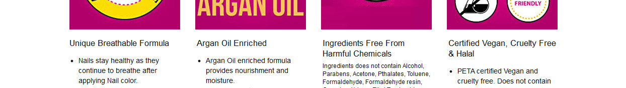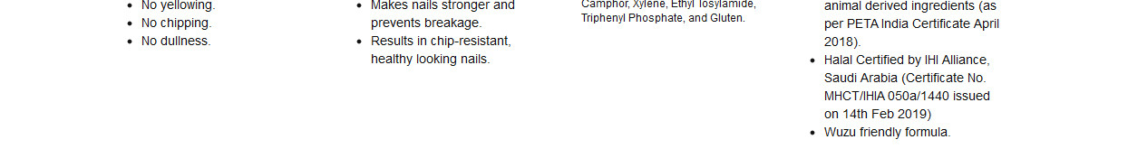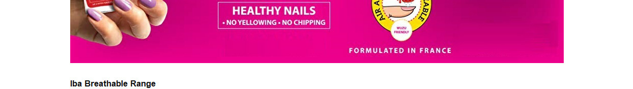 Iba presents India's first Breathable Nail Color range! Its unique French formula and special molecular structure make its air and water permeable, which means it allows both oxygen and moisture to reach your nails keeping them hydrated, fresh and beautiful. Compared to ordinary nail lacquers which form an impermeable layer causing the nails to suffocate, dry out, become yellow and chip off. Iba Breathable Nail Colour’s argan oil-enriched, long stay and quick-drying formula keeps your nails healthy, long and strong. Argan oil enriched for stronger and healthier nails. Revolutionary long stay breathable formula allows air and water to permeate through the nail colour. Internationally Halal Certified by IHI Alliance, Saudi Arabia. Wuzu Friendly. No base coat required. Apply directly onto nails. Quick-drying, long-stay nail colour. No yellowing, chipping or dullness. Nails stay healthy as they continue to breathe after applying Nail colour. Free from 12 harmful chemicals (does not contain alcohol, parabens, acetone, phthalates, toluene, formaldehyde, formaldehyde resin, camphor, xylene, ethyl tosylamide, triphenyl phosphate or gluten). Formulated in France.