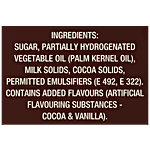 Sugar, Partially Hydrogenated Vegetable Oil (Palm Kernel Oil), Milk Solids, Cocoa Solids, Permitted Emulsifiers (E322, E476), Contains Added Flavours (Artificial Flavouring Substances - Cocoa & Vanilla)