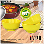 Iveo 100% Melamine Veg Bowl Set - Yellow, 3 pcs