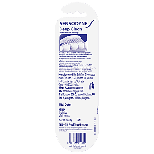 Sensodyne Deep Clean Toothbrush - With Extra Soft & Microfine Bristles, 3 pcs (Buy 2 Get 1 Free)
