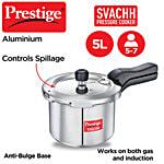Prestige Svachh Aluminium Anti Bulge Gas & Induction Compatible Pressure Cooker - Silver, 5 L