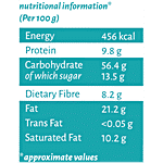 Nutrition_per: 100g Energy: 456 kcal Protein: 9.8 g Carbohydrate: 56.4 g of which sugar: 13.5 g Dietary Fibre: 8.2 g Fat: 21.2 g Trans Fat: <0.05 g Saturated Fat: 10.2 g