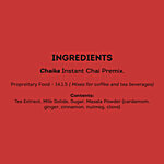 Tea Extracts, Milk Solids, Sugar, Masala Powder (Cardamom, Ginger, Cinnamon, Nutmeg, Clove)