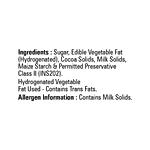 Sugar, Edible Vegetable Fat (Hydrogenated), Milk Solids, Cocoa Solids, Milk Solids, Maize Starch, & Permitted Preservative Class II (INS202) Hydrogenated Vegetable Fat Used-Contains Trans Fats
