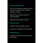 1. Add 25-30 gram of granules on the top layer of soil per pot and mix it well.