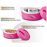 Milton New Marvel 2500 Inner Steel Casserole For Roti/Chapati - Pink, 2.36 L