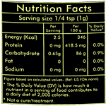 Serving Size 1/4 tsp (1g) Per Serving: Energy (Kcal) - 2.5, Protein - 0 mg, Carbohydrate - 0.65 g, Fat - 0, Sodium - 0 mg.