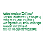 Per 100ml** - Energy : 49 kcal,; Total Carbohydrate : 12.3 g , of which Sugars*: 12 g , Protein : 0g, Total Fat : 0 g, Saturated Fat : 0 g, Trans Fat : 0 g, Sodium : 28 mg, Potassium: 59 mg (#Including natural fruit sugars)