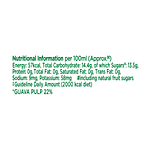 Per 100ml** - Energy : 57 kcal,; Total Carbohydrate : 14.4 g , of which Sugars* : 13.5 g , Protein : 0 g, Total Fat : 0 g, Saturated Fat : 0 g, Trans Fat : 0 g, Sodium : 9 mg , Potassium: 58 mg (#Including natural fruit sugars)