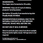 Per 100 g:- Energy (kcal)- 8; Protein- 0; Fat- 0; Saturated Fat- 0; Carbohydates - 1.9; Sodium(mg)- 5.2; Potassium (mg)- 63 Benefits of vinegar with the Mother: Helps improves digestion; Supports the immune system; Helps lower blood sugar levels.