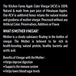 The Kitchen Farm's Apple Cider Vinegar is 100% natural and made from pure juice of Himalayan apples. Our ACV is unfiltered, hence retains the natural residue and goodness of mother vinegar. Processed without any artificial colour, preservatives, additives or flavour. Made from juice of 100% natural Himalayan Apples. Raw and Unfiltered. Regular consumption of Diluted ACV with a glass of warm water can increase metabolism to promote Weight Loss and Control BP. Soak your nails in ACV to get stronger nails & get rid of fungal infections. ACV can do wonders for your skin. For an all-natural astringent, apply a washcloth soaked in diluted ACV to your face. This will help to maintain a good PH for your skin. ACV with mother vinegar improves Digestion, supports the immune system & Helps lower blood sugar levels. Sedimentation is Normal due to natural contents of the Mother Vinegar. Shake well before use. Quantity: 500 ml (Bottle) Store in cool & dry place away from direct sunlight. Keep the bottle tightly closed. Refrigeration is not required.