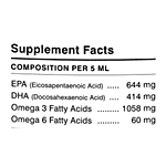 EPA - 644mg ; DHA - 414mg ; Omega 3 - 1058mg ; Omega 6 - 60mg.