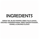 Green Tea, Black Pepper, Dried Tulsi Leaves, Crushed Cinnamon Bark, Dried Ginger Powder, Fennel And Crushed Clove