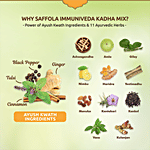 Saffola ImmuniVeda Kadha Mix is a unique Ayurvedic recipe containing ingredients which help in boosting your immunity, support your respiratory health and help relieve cough, cold and sore throat. It is made from a combination of the powerful ingredients of Ayush Kwath, along with 11 carefully selected ayurvedic herbs. Using the traditional process, herbs are crushed & boiled in water for hours to make into a decoction to harness its benefits. Saffola ImmuniVeda Kadha Mix brings the power of this potent decoction to you in single-serve sachets. Enjoy the immunity-boosting benefits in the form of an Ayurvedic herbal tea - just empty the sachet in a cup of hot water, mix thoroughly and sip! Why Saffola ImmuniVeda? Your immunity is your body's shield against ailments. The need to bolster this natural protective cover is becoming critical as new challenges keep emerging in the world. Saffola ImmuniVeda is a contemporary range of products that harness the power of Ayurveda, with ingredients which help in boosting your immunity. Inspired by the ancient recipes, we have carefully selected potent ingredients and combined them to create unique Ayurvedic products.