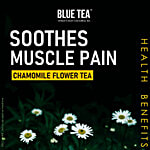Blue Tea - Chamomile Whole Flower - Herbal Tea - 30g - 50 Cups. Chamomile tea boosts the immune system and helps fight infections associated with colds. Chamomile herbal tea has a very calming aroma of Chamomile flowers. Chamomile flower tea has anti-oxidants and flavonoids regulate cellular activity and fight off free radicals that cause oxidative stress on your body. Due to its anti-inflammatory properties, chamomile tea protects against diarrhoea, stomach ulcers, nausea and gas. Chamomile flower tea has Antispasmodic properties which ease menstrual cramps and lessen the possibility of premature labour. Chamomile Whole Flower Tea naturally relaxes the nervous system, with organic whole chamomile flowers, you can get a better full night's sleep.