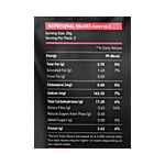 Serving Size: 25 g - Energy: 99.8kcal; Total Fat (g): 3.96; Saturated Fat (g): 1.44; Trans Fat (g):0.0; Cholesterol (mg): 0; Sodium (mg): 163.25; Total Carbohydrates (g): 17.5; Dietary Fibre (g): 3.63; Natural Sugars from Peas (g):0.4; Added Sugars (g): 0; Protein Ig): 2.62.