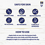 This quick-absorbing body oil has a light, non-greasy texture that nourishes and softens your skin without leaving behind any residue or stains on clothes. It has a mild pleasing fragrance that lingers on your skin, making you feel refreshed and rejuvenated. Dual-action moisturiser that repairs, soothes and restores the moisture levels of the skin and locks in moisture & restores dull and dry skin to silky smoothness. It feels rich going on, but it massages into a surprisingly not sticky, satiny finish. Helps prevent and heal irritation from dry, flaky skin and reduces inflammation due to dryness.