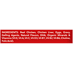 Real Chicken, Chicken Liver, Eggs, Gravy, Gelling Agents, Natural Flavors, Dha, Organic Minerals & Vitamins (Vit E, Vit A, Vit C, Vit D3, Vit B1, Vit B2, Vit B6, Choline, Folic Acid).