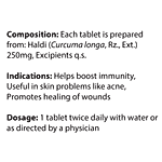 With over 130 years of expertise in Ayurveda, Dabur has always been committed to the health and well-being of every household. Power-packed with the age-old wisdom of Ayurveda, Dabur Pure Herbs range of tablets is the latest offering from the house of Dabur in fulfilling this vision. The health-boosting Dabur Haldi tablets in our range have the goodness of Haldi in it. Haldi helps boost immunity and is known to work as an anti-allergen. Haldi is also useful in curing skin problems like acne and also promotes the healing of wounds, thereby making Dabur Haldi tablets a perfect choice for your overall health.