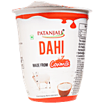 Patanjali pouch dahi made from pasteurised cow milk. 100% natural. The taste of the real dahi provides calcium good for strong bones and teeth. Supply of proteins help maintain active life and growth, helps digestion supports the digestive system in the gut. Its tastier and healthier, so everybody loves it.