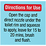 Press cap and twist counterclockwise to open. Squeeze liquid around the bowl under the rim. Leave for 20 minutes, brush then flush. Also works on Indian toilets.