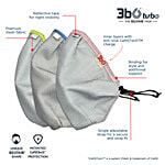 3bO Deltoid Turbo Face Masks In Grey Mesh With Pink, Blue & Green Bindings - Assorted, 3C2007, Small, 3 pcs