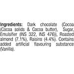 About the productThis Happy Fruit N Nut Dark Chocolate Bar is crafted with 55% cocoa to give you the natural taste of chocolate. It also contains ingredients like roasted almonds and raisins to give you a crunch and some tang. Break them piece by piece and relish or just bite into them as you please.