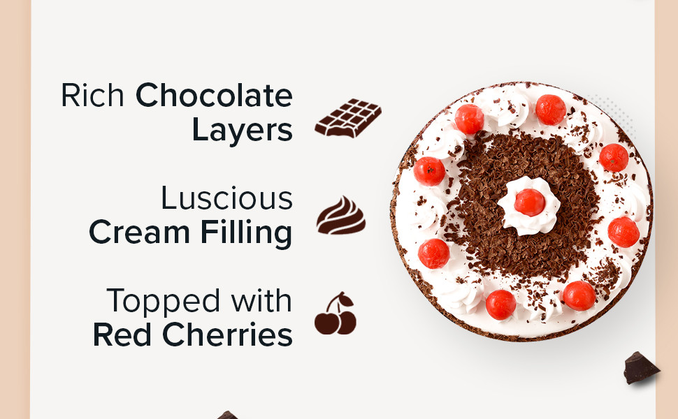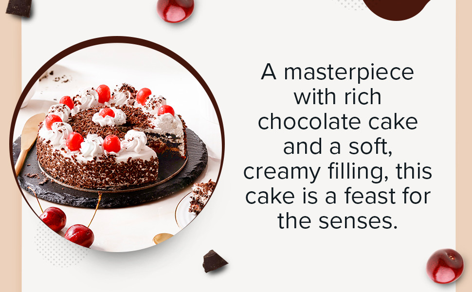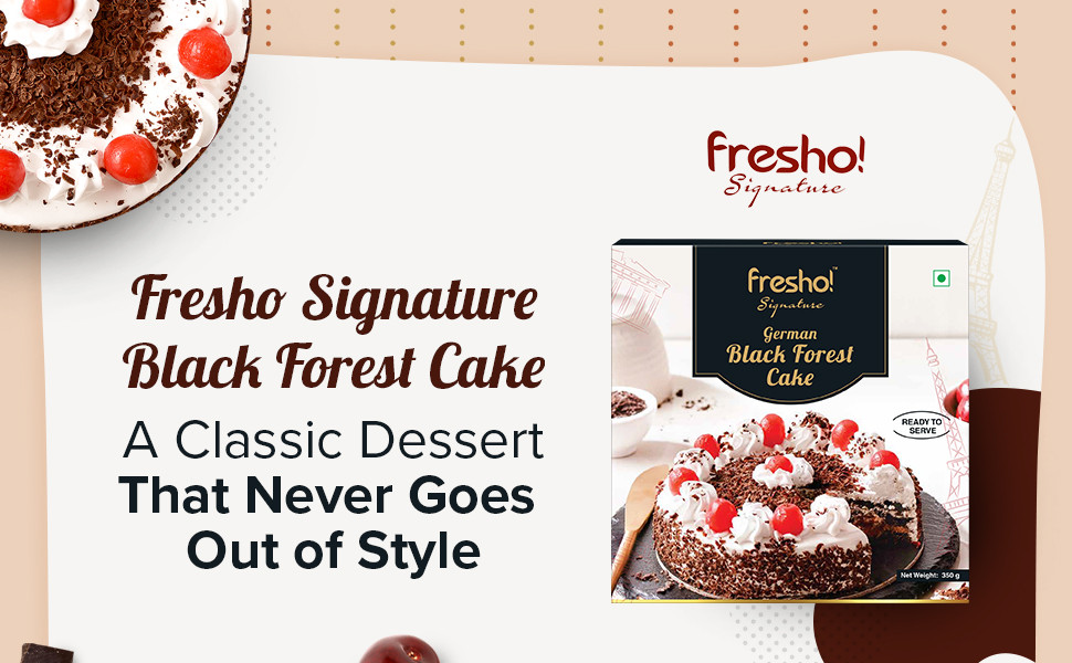 About the ProductFresho Signature Black Forest Cake is a chocolate cake made from rich ingredients that consist of several layers of chocolate sponge cake. The cake is decorated with wipped cream, and chocolate shavings. This cake is loved by all irrespective of age. Celebrate any occasion with this ideal dessert for the event. Its smooth texture melts down in your mouth, giving a creamy feel.