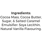 Cocoa Mass, Cocoa Butter, Sugar & Salted Caramel, Emulsifier: Soya Lecithin & Natural Vanilla Flavouring.