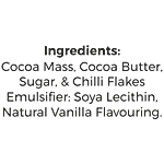 Cocoa Mass, Cocoa Butter, Sugar & Chilli Flakes, Emulsifier: Soya Lecithin & Natural Vanilla Flavouring.