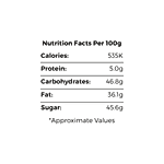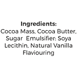Cocoa Mass, Cocoa Butter, Sugar, Emulsifier: Soya Lecithin & Natural Vanilla Flavouring.