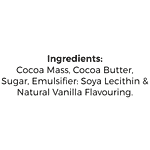 Cocoa Mass, Cocoa Butter, Sugar, Emulsifier: Soya Lecithin, Natural Vanilla Flavouring,