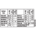 Nutrition per gram/ml: 100g Energy (kcal): 280.77 Total Fat (g): 3.82 Carbohydrate (g): 51.41 Trans fat (g): 0.03 Total Sugars (g): 4.21 Saturated fat (g): 0.59 Added sugar (g): 0 Cholesterol (mg): 0 Dietary fibre (g): 18.3 Protein (g): 10.19