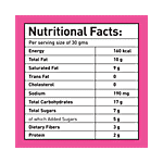 Energy - 160 kcal, Total Fat - 10 g, Saturated Fat - 9 g, Trans Fat - 0 g, Cholesterol - 0 g, Sodium - 190 mg, Total Carbohydrates - 17 g, Total Sugars - 7 g, of which Added Sugars - 5 g, Dietary Fibre - 3 g, Protein - 2 g.