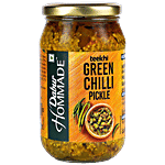 Dabur Hommade Chilli Pickle is prepared from the finest green chillies, marinated and prickled with a rich blend of traditional Indian spices. It gives you the perfect taste of and spicy chilies flavor. It is a delightful accompaniment to your favorite meals like- dal rice, sambhar rice, paranthas, snacks etc.