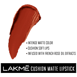 Presenting the new Lakme Cushion Matte Lipstick. An exclusive new matte lipstick with a revolutionary soft matte formula that makes matte lips feel soft and comfortable. This soft matte lip colour has an intense colour payoff that gives lips a matte yet soft-focus effect. The soft matte formula is enriched with rose oil extracts from France which give your matte lips a moisturised, comfortable feel. Its non-drying formula doesn’t dry your lips and leaves them feeling soft and looking intensely matte. The new Lakme Cushion Matte Lipstick cushions your lips in a single stroke with its smooth and creamy application. To get an even and uniform matte finish on your lips, start by defining your cupid’s bow, then smoothly glide the lipstick to the other edge of both your upper and lower lips. Lakme Cushion Matte is a water-resistant soft matte lipstick that gives you a long-lasting intense matte colour and cushions soft lips all day. Choose from 20 vibrant matte shades and wear cushiony soft lips for a variety of occasions. To complete your soft matte look, pair your cushion matte lips with Lakme Eyeconic Lash Curling Mascara, and Lakme Impact Eyeliner. Try it now!