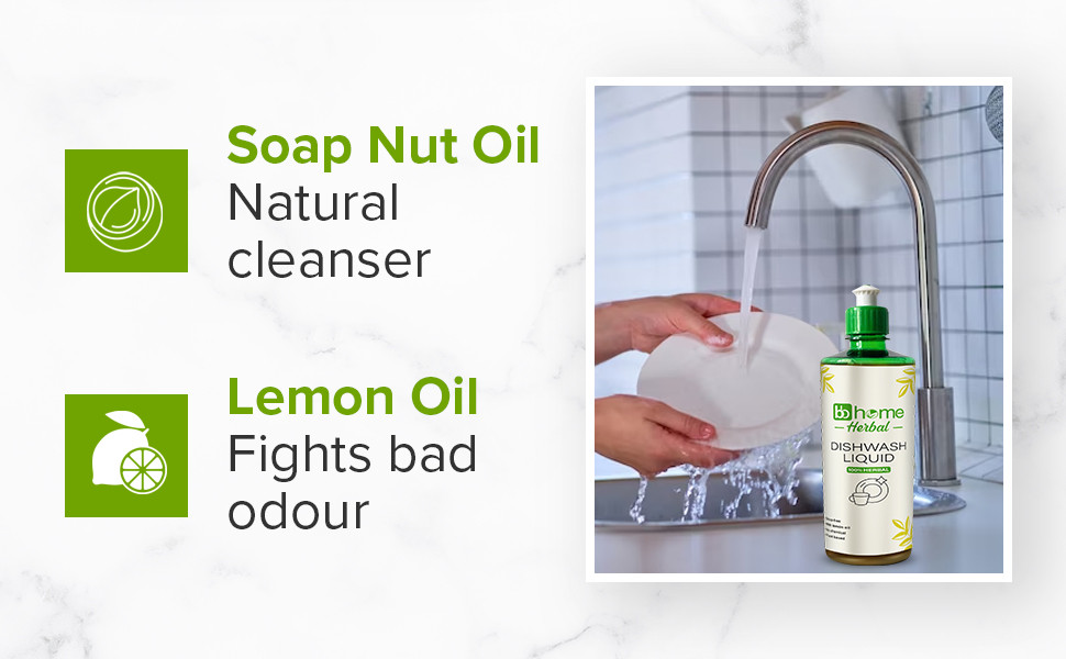 BB Home Herbal’s Dishwash Gel is here to give your dishes and utensils a clean, sparkling and fragrant effect. This gel is made from all-natural ingredients to give your kitchen products a herbal cleansing. The soapnut oil present in this gel makes sure to clean any residue, the lemon oil disinfects and gives a gentle fragrance.