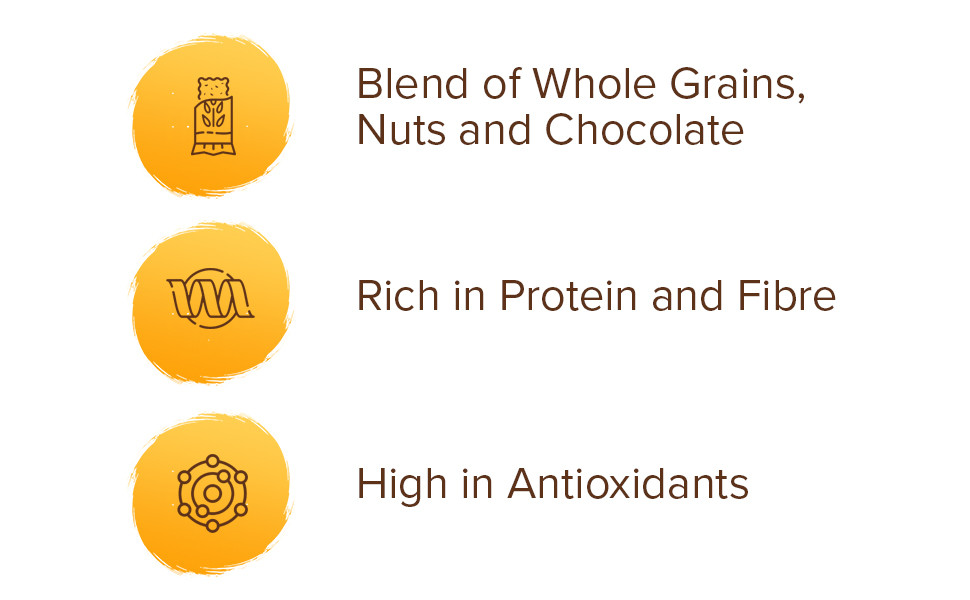 Rolled Oats, Natural Honey, Brown Rice Flakes, Dark Chocolate, Peanuts, Rice Crisps, Pearl Millet Flakes, Watermelon Seeds, Sunflower Oil, Sunflower Seeds, Ragi Flakes, Chia Seeds, Dates, Rock Salt, Vanilla Flavour.