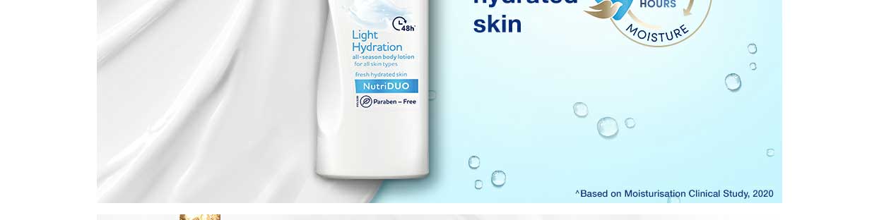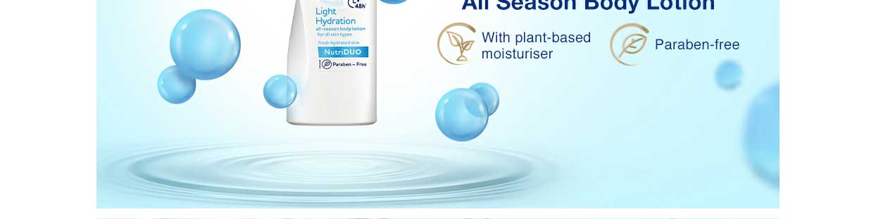 The new Dove Nourishing Body Care, Light Hydration body lotion is enriched with NutriDUO, this light formula nourishes skin 10 layers deep (Within the stratum corneum). Its formula is so light and non-sticky that it can be used throughout the year. It delivers rich nourishment yet feels light & refreshing on the skin. Results an irresistibly soft, hydrated skin that's smooth to the touch. Its non-sticky.