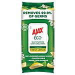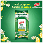 Ajax Eco Multipurpose Wipes For sparkling clean surfaces, Makes cleaning a breeze. Feel proud using 100% biodegradable wipes. Feel powerful with anti-germ wipes that remove 99.9% of germs to keep your home clean. Feel good knowing these wipes are compostable and made from bamboo fibres.