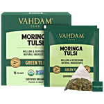 Vahdam Organic Moringa Tulsi Green Tea - Energy Booster Herbal Tea, 30 g (15 Pyramid Bags x 2 g each)