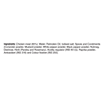 Proprietary Food 8.3.3 Frozen processed comminuted meat Products-Cooked Chicken Meat (65%), Water, Palmolein Oil, Iodized Salt, Spices and Condiments (Coriander Powder, Mustard Powder, White Pepper Powder, Black Pepper Powder, Nutmeg , Dextrose, Herb (Parsley and Rosemary), Acidity Regulator (INS-451(i)), Paprika Powder, Antioxidant (INS-316), Colour Fixative (INS-250). CONTAINS MUSTARD