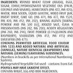 Refined Wheat Flour (Maida), Eggs, Sugar, Edible/Hydrogenated Vegetable Oils (Palm, Coconut And Sesame), Humectants (Ins 422, Ins 420), Water, Milk Solids, Liquid Glucose, Mixed Fruit Jam, Invert Syrup, Cake Gel (Ins 471, Ins 477, Ins 1520, Ins 420, Ins 412, Ins 202), Raising Agents [Baking Powder And Ins 500 (Ii)], Iodized Salt, Class Ii Preservatives (Ins 282, Ins 200), Acidity Regulators (Ins 260, Ins 296), Fruit Powder (0.1%)(Lemon And Raspberry), Stabilizers (Ins 412, Ins 415) And Emulsifier (Ins 471). Contains Permitted Artificial Food Colour (Ins 122) And Added Natural And Artificial (Vanilla), Nature Identical (Raspberry) And Natural (Lemon) Flavouring Substances. (Numbers In Brackets As Per International Numbering System). Hydrogenated Vegetable Fat Used - Contains Trans Fat. Polyols May Have Laxative Effect. Contains Wheat, Egg And Milk Ingredients.