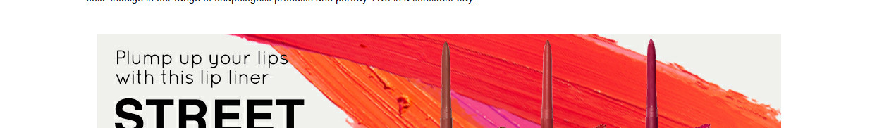 Street Wear has been creating bold revolutionary products for the modernistic woman. Inspired by women who express power and independence, we aim to speak up in tandem with our innovative products formulated by our professionals so that you can create a style so fierce and unleash your version of being bold. So here’s presenting Streetwear Matte lipliner a highly-pigmented lipliner that delivers unparalleled color payoff in a plush-matte formula.