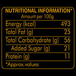 Nutrition_per: 100g Energy (kcal): 493 kcal Total Fat (g): 25 g Total Carbohydrate (g): 56 g Added Sugar (g): 21 g Protein (g): 11 g