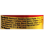 Beetroot, Sesame Seed Paste, Olive Oil, Balsamic Vinegar, Cashew, Milk Solids, Cheese Powder, Garlic, Iodized Salt, Sugar, Black Pepper, Mixed Spices, Acidity Regulator (INS 330) and permitted Class II preservatives (INS 211 & INS 202)