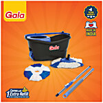 Package Includes 1 Gala Turbo Spin Mop Bucket, 1 Gala Rubber Grip Spin Mop Rod, 1 Triangular Head, 2 Gala Patented Turbo spin mop refill (1+1), warranty card. A sturdy wheel with sleek puller handle is attached to the bucket that helps you easily carry bucket it around the house, even when filled with water Gala Turbo Spin Mop comes with a 1-year warranty.