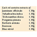 Jatipatra (Jasminum officinale), Neem (Azadirachta indica), Patola (Trichosanthus dioica), Karanja (Pongamia pinnate), Yashtimadhu (Glycyrrhiza glabra).