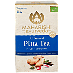 Established in the year 1987 with the promise to spearhead His Holiness Maharishi Mahesh Yogi Ji’s mission “Create a disease free society”, Maharishi Ayurveda has been making the science of Ayurveda more relevant to modern lifestyle. It is renowned for its expertise, superior solutions and over 800 research and clinical trials conducted in prestigious institutions around the world. Based on the axiom of age-old science of holistic healing, our aim is to bring body to its natural state by eliminating diseases or vikar from within. Maharishi Ayurveda Organic Pitta Tea is prepared with traditional Ayurvedic ingredients like Rose petals that are considered as cooling agents in ayurveda, Licorice contributes the sweet taste, Cardamom is considered an excellent digestive, especially beneficial for bloating and intestinal gas, Ginger is useful in aiding digestion, promoting appetite and helping with occasional stomach discomfort, Cinnamon is used to balance the digestion and can also help with occasional stomach discomfort.